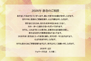 あけましておめでとうございます。謹んで新年のお慶びを申し上げます。旧年中は、格別のご愛顧を賜り、心より御礼申し上げます。…