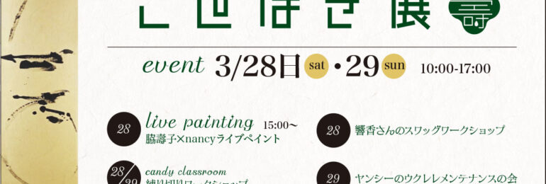 只今開催中の前衛書道家・脇壽子先生と私による二人展「ことほぎ展」いよいよファイナルが近づいてまいりました。3月28日(土)・29日(日)には特別イベントを開催いたします。■開催時間 10:00〜17:00■会場 クレア・ジープラス〒737-0907広島県呉市焼山西3丁目30−13 ・…